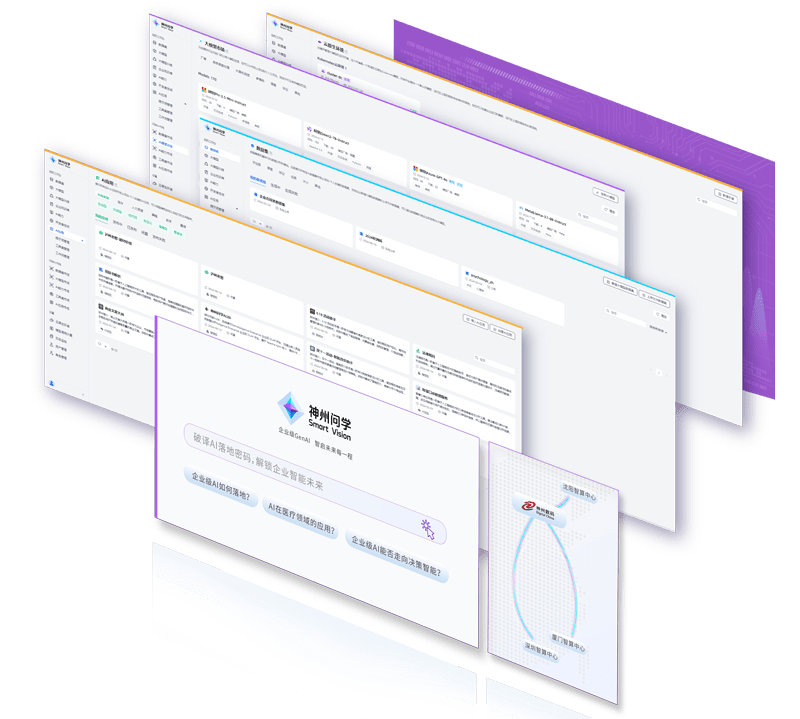 打通GenAI落地企业的算力、、、、模型、、知识、、、应用四大要素,,,,综合解决GenAI工程在选、、、练、、、用、、、、管四大环节的问题,,,旨在为企业的数智化转型提供全套的GenAI智能应用工程流水线。。。。英国365上市公司问学包括模型算力管理平台、、、企业私域知识管理平台、、AI应用工程平台三大模块,,为企业提供更先进、、更匹配的大模型,,,,解决了算力上信创适配、、融合调度、、、企业私域大模型高效推理训练问题,,,,同时解决了数据到知识的向量化以及场景应用的轻量化组装问题。。